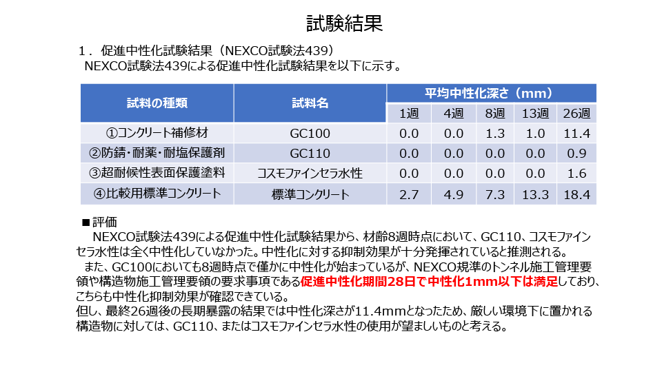■ 中性化抑制性能(コンクリート劣化抑制)【促進中性化試験】