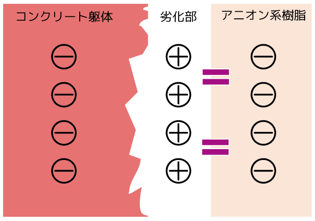 ※アニオン系樹脂はコンクリート劣化部と電気的に結びつきやすい。