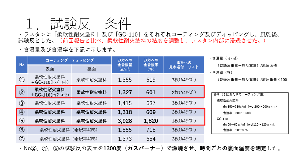 ■柔軟性耐火塗料の燃焼試験(難燃性評価)